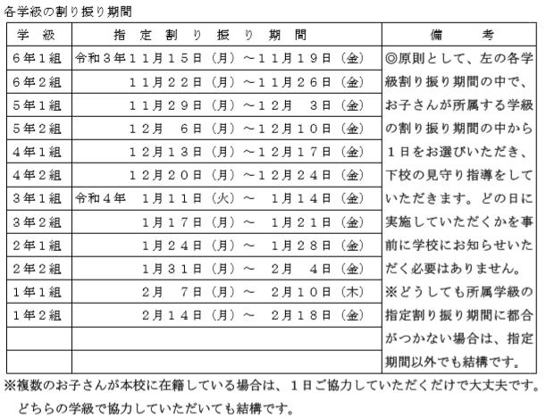 今年一年間の保護者、地域の皆様のご支援に、心より感謝申し上げます。全国的に新規感染者数が少ない状況が続いていますが、オミクロン株の出現や郡内小学校でのクラスター発生など、まだまだ油断はできない状況が続いています。冬休みも外出時のマスクの着用、3密の回避や手洗いなど、基本的な感染防止対策の徹底の協力をお願いします。良いお年をお迎えください。