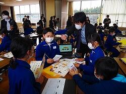 小中連携授業参観 益子中学校の英語の先生と教育委員会の先生が6年生の外国語の授業を参観しました。