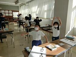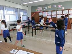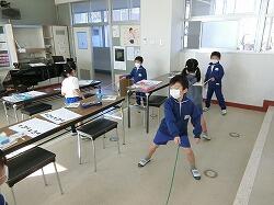 今日の運動タイムは「なわとび」をやりました。準備運動を行った後、前跳びを30秒間引っかからずに跳べた人数をクラスで集計して競いました。1回目は5年1組と5年2組が22人で優勝しました。2回目は1年生にハンディをつけ、人数の2倍をして14人×2=28人になり、1年1組が優勝しました。楽しみながら「なわとび」を跳ぶことができました。