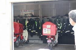 〈消防署〉救急車に乗ったり、消防車やポンプ車を見学したりしました。ホースなどの道具を持つ体験をして、重さに驚きました。