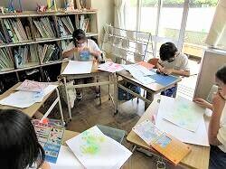 3年2組 図工 絵の具の使い方、色の塗り方を学習しました。