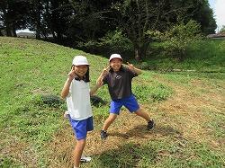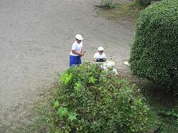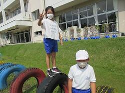 気温が上がってきましたが、子供たちは元気に外で遊んでいます。子供たちには、水分をしっかりとるよう指導しています。