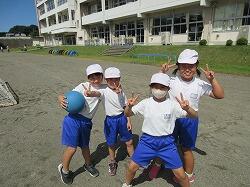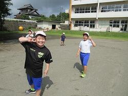 校庭の水たまりも無くなり、子供たちは楽しそうに遊んでいます!