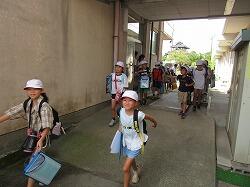 緊急地震速報避難訓練の様子(6/17 西小タイム)