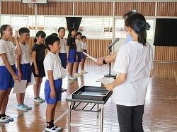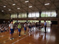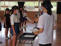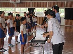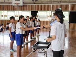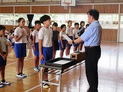 暑さ対策のため、1校時前に第1学期終業式を行いました。1学期の生活を振り返り、努力の足跡や成果を互いに認め合う機会となりました。