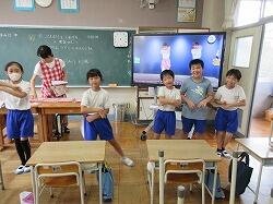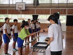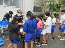 今日は、2~4校時に、2・4・6年生が着衣泳の講習を行っています。ラッコ倶楽部(芳賀地区広域行政事務組合消防本部署員の有志)の皆様から、水難事故に遭遇した場合の対処法について、ご指導いただきました。写真は、2年生(3校時)の様子です。