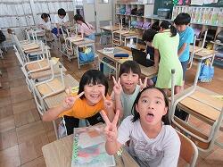 今日も気温がとても高いです。昼休み、子供たちは室内で楽しく過ごしています。