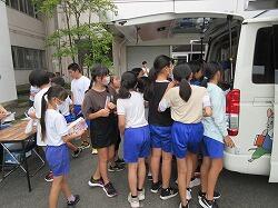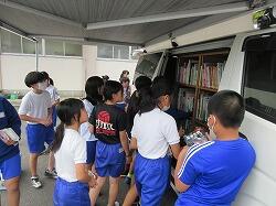 今日は、子供たちが楽しみにしている「とっくん号(移動図書館)」が来校しています。