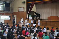 終業式がありました。校長先生の講話のあと、代表児童の作文発表がありました。たいへん上手でした。児童指導から「な・つ・や・す・み」の生活についてお話がありました。