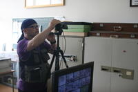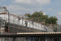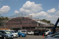 体育館の空調工事が8月から始まっています。この暑さの中、屋根の塗装工事を行っています。お疲れ様です。