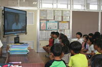 今日は朝から雨模様。校庭には出られないので、児童たちは思い思いに室内での活動を楽しんでいます。