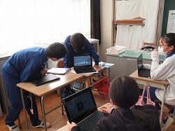 友達の動きを動画で撮影しています。自分の動きを見て確認したり、手本の動きと比べたりしながら学習を進めています。