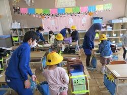 一緒に持ち物を確認しながら、しっかりと朝の準備を行うことができていました。