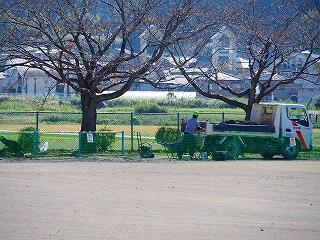 新しく設置した低鉄棒 支柱が固まるまでネットの中には入りません。