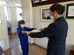 2月16日(水)に表彰を行いました。給食の時間に名前を校内放送で読まれ、昼休みに校長先生から賞状が伝達されました。
