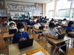 ※本校では、GoogleMeetを利用した授業を全学年実施しております。タブレットPCの操作は授業で児童に指導しております。保護者の皆様にはタブレットPCをご家庭のWi-Fiに接続する設定をお願いします。ご不明な点がございましたら学校にご連絡ください。