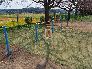 新しく設置した低鉄棒              支柱が固まるまでネットの中には入りません。
