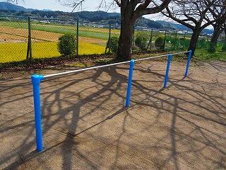 低鉄棒が増えました。今ままであった低鉄棒よりもさらに低い鉄棒を増設しました。身長の高さに合わせて鉄棒運動ができるようになりました。工事後約1週間で使用できるようになるとのことです。新しい鉄棒を使える日が来るのが楽しみです。