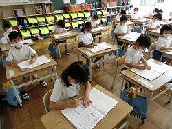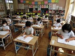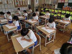 書写の時間は、とめ・はね・はらいや画の長さや方向に気を付けながら文字を書いています。1年生になって学習したひらがなや学習が始まった漢字も丁寧に書くことができるようになってきました。良い姿勢で文字を書くことも意識できるようになってきました。
