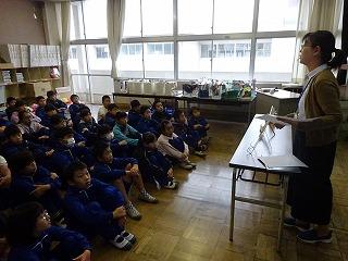 5年1組はかたつむりの会の方に2冊の本を読んでいただきました。