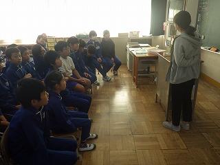 5年1組はかたつむりの会の方に2冊の本を読んでいただきました。