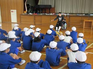 10月24日(木)栃木県オリンピック・パラリンピック教育推進事業として、シッティングバレーボールの金田典子選手が益子西小に来ました。5時間目に全校生を対象に講話をしていただきました。