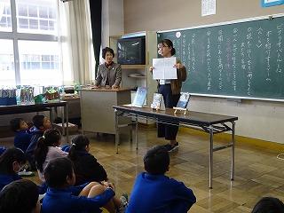 今回は子どもたちのイメージをふくらませるために、校長先生が進行を行い、学校司書の先生と