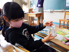 2年生は算数でかけ算九九を学習しています。今日は「九九カード」と「九九スクラッチ」が配られました。新しい勉強に興味津々の2年生です。