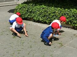 1年生はまだ清掃分担場所が決まっていないので、清掃の時間はみんなで中庭の草取りをしています。