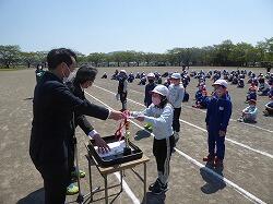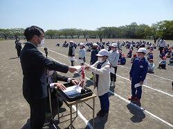 西小タイムに学級委員任命式と表彰を校庭で行いました。