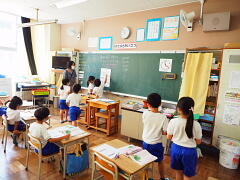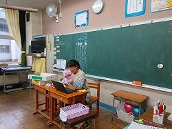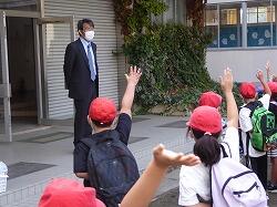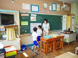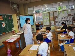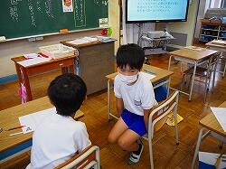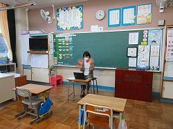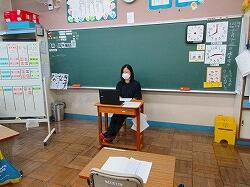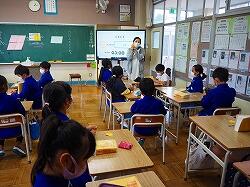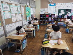 2年1組の担任の先生が10月から大学で半年間の研修を行うため、代わりの先生が来ました。朝の会で自己紹介をした後、勉強を教えていただきました。今日は雨が降っていたので、集団下校時に予定していた新しい先生の紹介を給食の時間に校内放送で行いました。2年1組のみんなは新しい先生との出会いに少し緊張した一日でしたが、先生の話をよく聞き、しっかり勉強しました。よろしくお願いします。