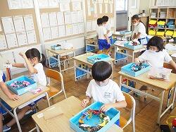 本日、2つの学級で校内研究授業が行われました。2校時は1年2組で図工の授業を行いました。題材名は「いろいろなかたちのかみから」で紙の形をいろいろな向きから見て感じたこと、想像したことから好きな形や色を選んで自分で表現する学習でした。自分の思いをもって作品を作ることができました。