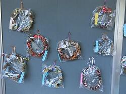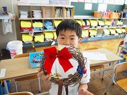 家から持ってきたモールやリボンなどの飾りを付けて、素敵なリースが完成しました。