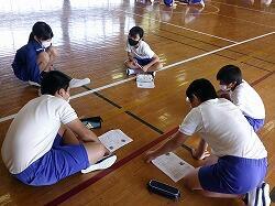 本日5校時に、体育館で遠足の事前指導を行いました。