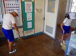 今日から清掃場所が変わりました。それぞれの場所で黙々と真剣にお掃除をしている西小っ子です。