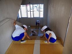 今日、登校すると6年生は進んで就学時健康診断で使用する体育館や体育館通路、廊下や階段などを掃除していました。来年度の新入生をきれいな学校で温かく迎えてあげようと一生懸命頑張る6年生です。