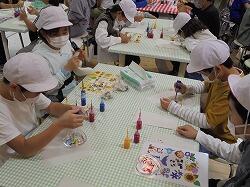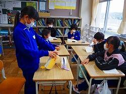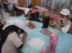 3年生が「手紙とはがきの書き方」の学習で先日掘ったサツマイモの絵を絵の具と綿棒を使って上手にはがきに描いていました。味のある作品(はがき)が完成しました。