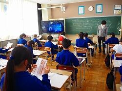 3時間目に1年2組の学級で道徳の研究授業が行われました。「はしのうえのおおかみ」の物語を聞いて、おおかみとうさぎの気持ちを考えました。「親切、思いやり」に関する内容で、人間関係を築く上で求められる基本的姿勢として、身近にいる人、様々な人々との触れ合いの中で、相手のことを考え、優しく接することができるようにすることをねらいとしています。 親切にすると親切にされた人も親切にした人もいい気持ちになることが分かりました。大勢の先生方に参観されて緊張しましたが、真剣に考えて、自分の意見を進んで発表することができました。