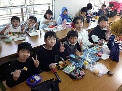 昼休みに3・4年生がサツマイモ掘りを行いました。サツマ畑を管理されている「里のめぐみの会」のお二人に来ていただき、苗を植えてから今までのサツマの成長の様子と掘り方について話を聞きました。学年の畝にはそれぞれ100本の苗を植えたそうです。大きく育ったサツマイモをたくさん掘ることができてみんな満足でした。