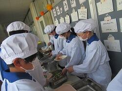 配膳する人、給食を机まで届けに行く人など、自分たちで役割を考えて行動することができました。