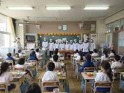 今週は、6年生が給食の準備のお手伝いに来てくれました。苦手な物もがんばって食べてみようと頑張っている姿が見られました。少しずつ片付けも上手にできるようになりました。