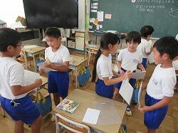 2年生が、生活科で学習した内容について、クイズを作り、友達と解き合っていました。