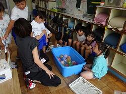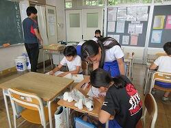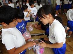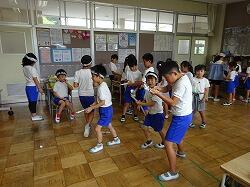 今日は、2~4校時に、2・4・6年生が着衣泳の講習を行っています。ラッコ倶楽部(芳賀地区広域行政事務組合消防本部署員の有志)の皆様から、水難事故に遭遇した場合の対処法について、ご指導いただきました。写真は、2年生(3校時)の様子です。