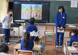 今日の朝の学習の時間に、図書委員による読み聞かせを行いました。1年生が自分の座席から見えるように、本のページを画面に写しながら読みました。よく話を聞いて、お話の内容に関する問題にも答えていました。来週は2年1組と2組で行いますので、楽しみにしていてください。