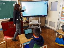 6年生 外国語科 小学校の思い出を電子黒板で確かめながら楽しく英語を学習しました。