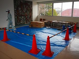 今日から校内Wi-Fi工事が始まりました。廊下の天井裏にケーブルを配線する工事を行いました。