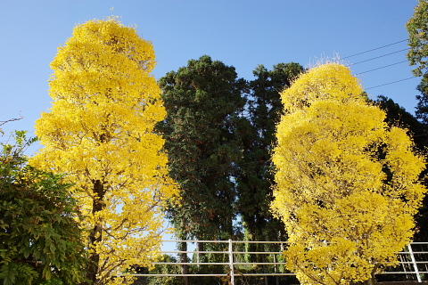 校舎西側の銀杏の木は、11月に入り黄色く色付き、今が一番見頃です。