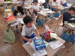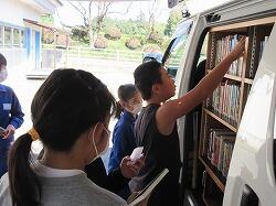 今日は、子供たちが楽しみにしている「とっくん号(移動図書館)」が、来校しています。
