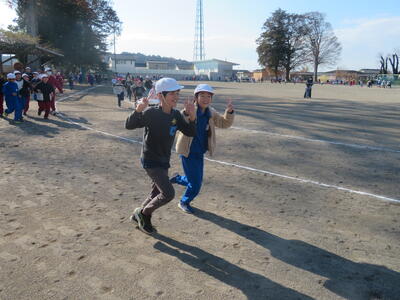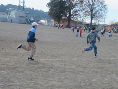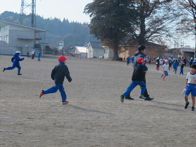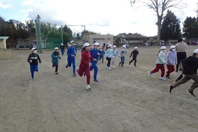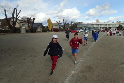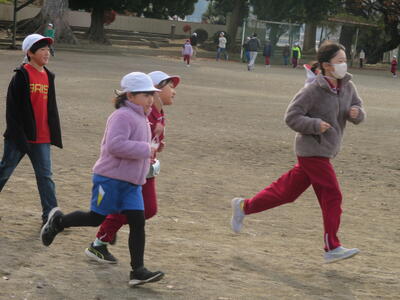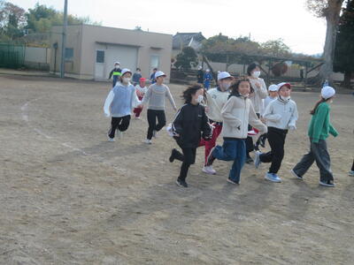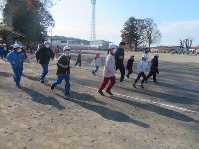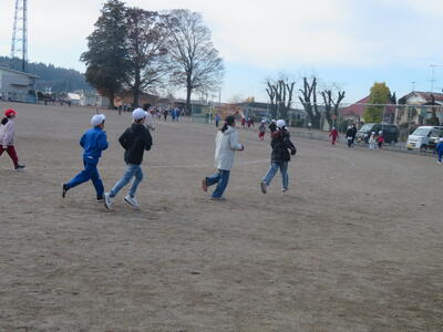 1~5年生は、町学力調査が終了し、業間は持久走大会に向けての練習です。今日も張り切って走ります。
