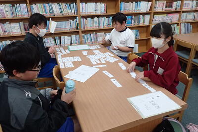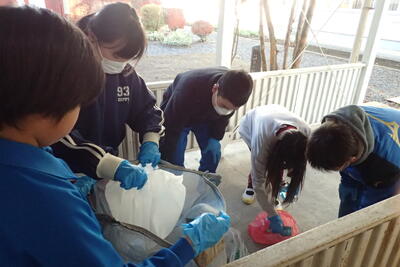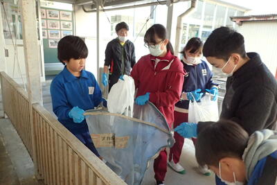 給食委員会は、各学級の配膳台の消毒を行っています。保健美化委員会は、安全点検を行っています。飼育栽培委員会は、飼育小屋の清掃等を行っています。図書委員会は、アンケート結果の集計をしています。運動環境委員会は、校庭の小石を拾う作業をしています。放送委員会、企画委員会は、2学期の反省点を話し合っています。